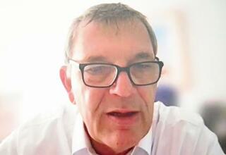 オンライン取材に応じるUNRWAのラザリニ事務局長=7日(共同)