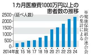 1カ月医療費1000万円以上の患者数の推移