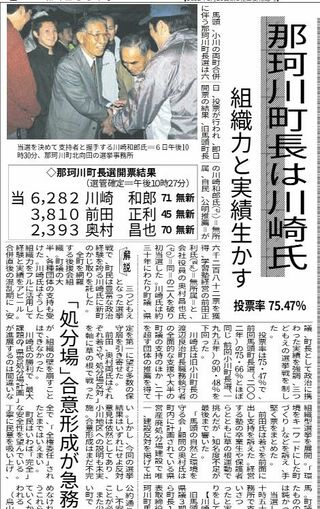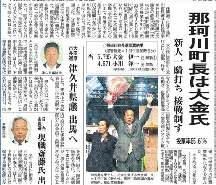 那珂川町長選、新人一騎打ちで12年ぶり選挙戦 著しい人口減少、将来どち…