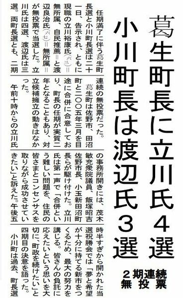 那珂川町長選終盤情勢 益子氏と鈴木氏、横一線 鍵は投票率か