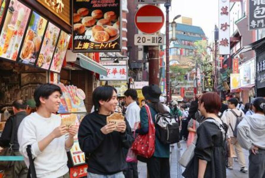 横浜中華街、食べ歩き盛況