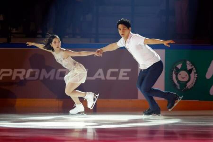 エキシビションで演技する三浦璃来(左)、木原龍一組=アンジェ(共同)