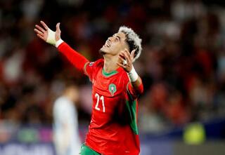 サッカーのU―20W杯チリ大会、決勝のアルゼンチン戦で2点目のゴールを決め、喜ぶモロッコのヤシル・ザビリ=19日、サンティアゴ(ロイター=共同)
