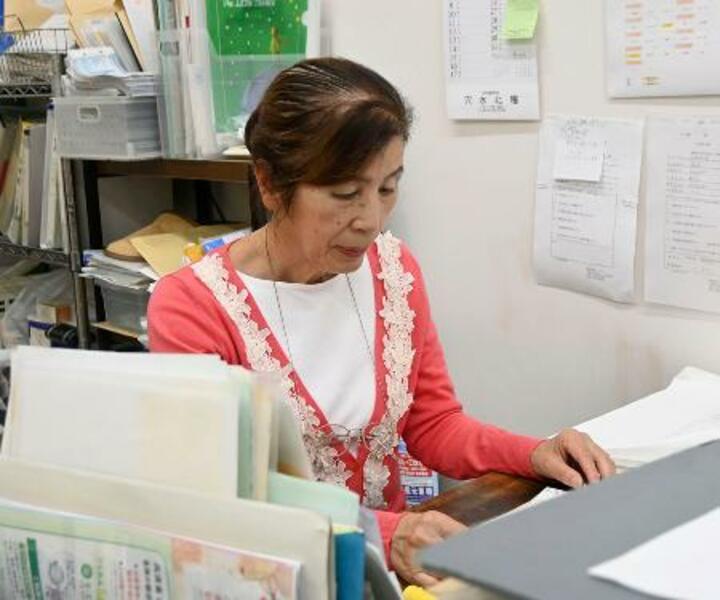 石川県穴水町の職場で作業する谷内律子さん=21日午後