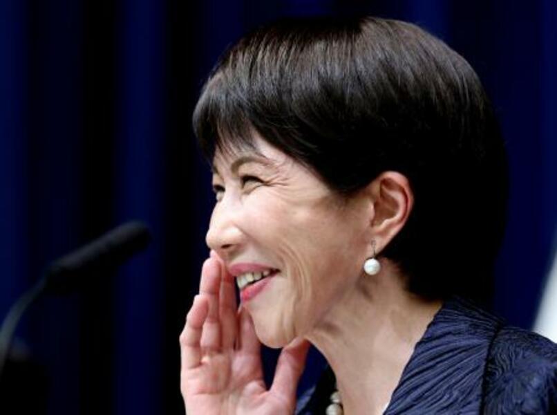 記者会見で笑顔を見せる高市早苗首相=21日午後10時43分、首相官邸(代表撮影)
