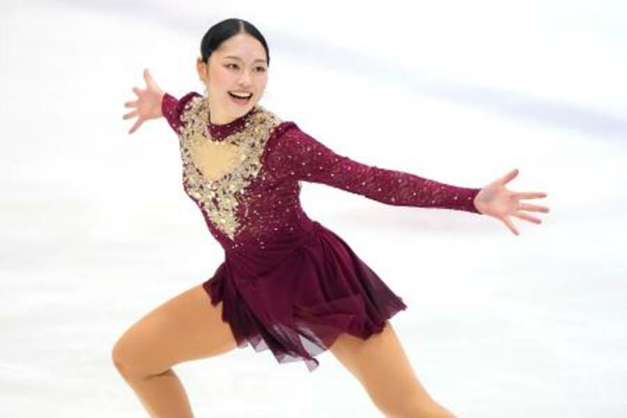 女子フリー 演技する河辺愛菜=山新スイミングアリーナ
