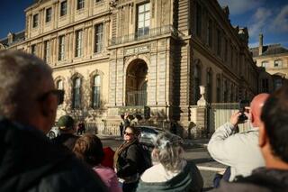 窃盗事件が起きたルーブル美術館を見に来た人々=25日、パリ(AP=共同)