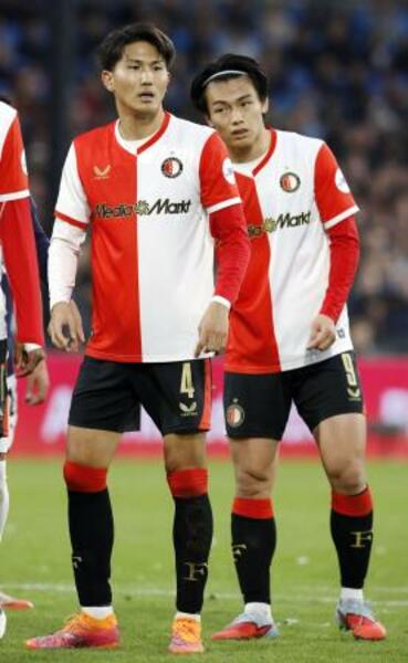 PSVアイントホーフェン戦に出場したフェイエノールトの渡辺(左)と上田=ロッテルダム(共同)