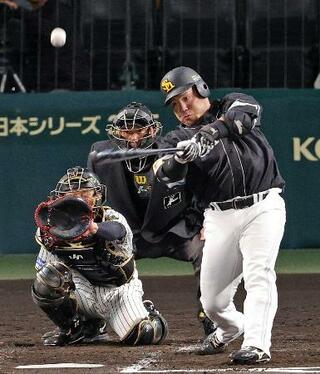 4回ソフトバンク1死、山川が中越えに同点ソロを放つ。捕手坂本=甲子園