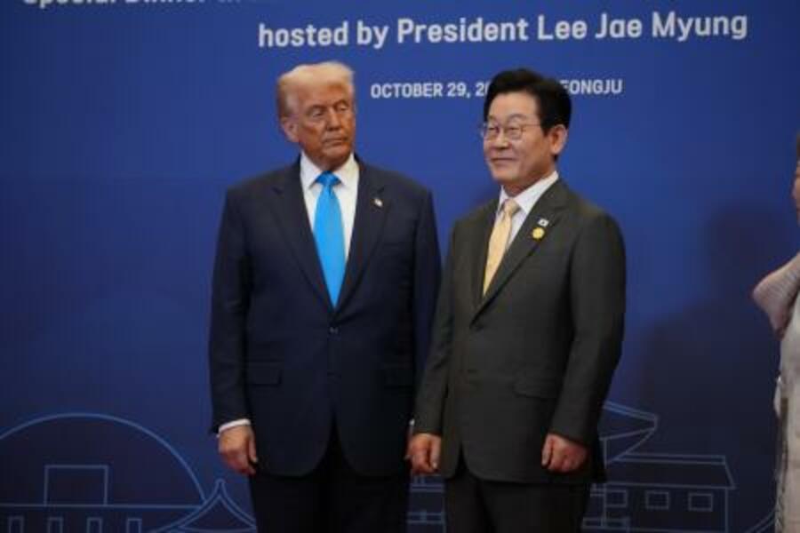 トランプ米大統領(左)と韓国の李在明大統領=29日、韓国・慶州(ゲッティ=共同)