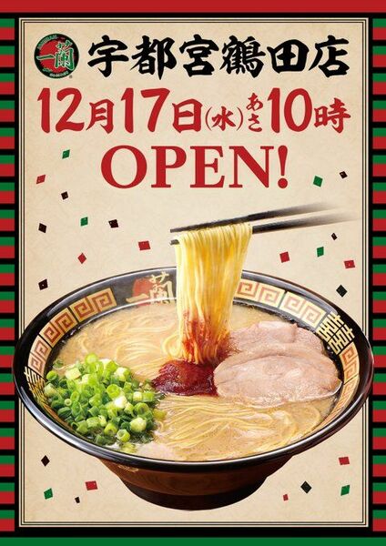 とんこつラーメン「一蘭」、栃木県内に初進出を発表 宇都宮鶴田店、年内オ…
