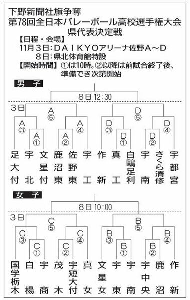 春高バレー栃木県代表決定戦、組み合わせ決まる 20日から熱戦