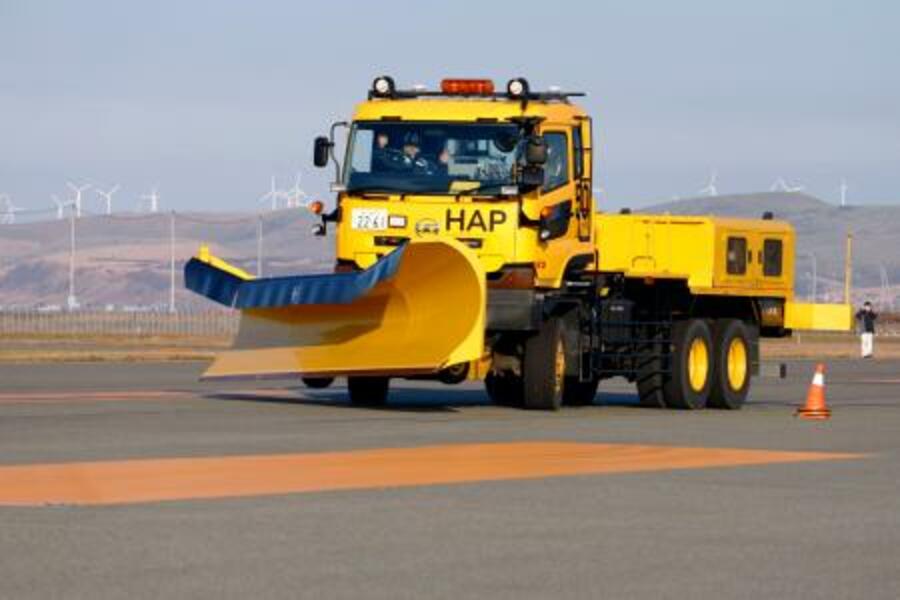 稚内空港で自動走行の実証実験を行う除雪車=5日午後