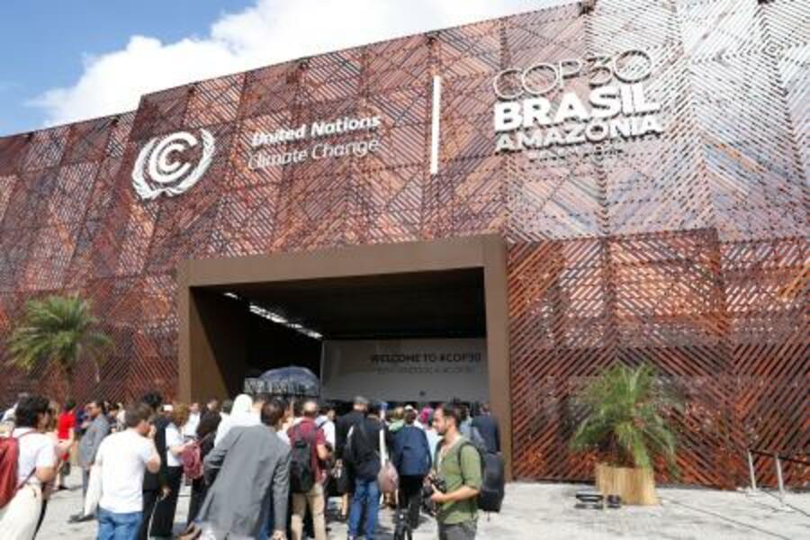 COP30の会場の入り口=10日、ブラジル・ベレン(共同)