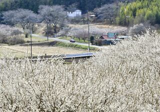 市貝・観音山梅の里で白梅満開 「例年にない花の付き」で連日にぎわい 1…