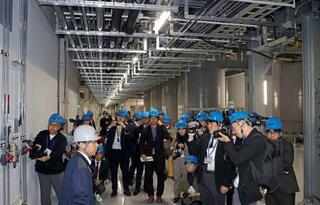 報道陣に公開されたTSMC熊本第1工場の水処理施設=12日、熊本県菊陽町