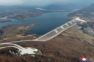 完工式が開かれた北朝鮮南東部・江原道淮陽の水力発電所(朝鮮中央通信=共同)