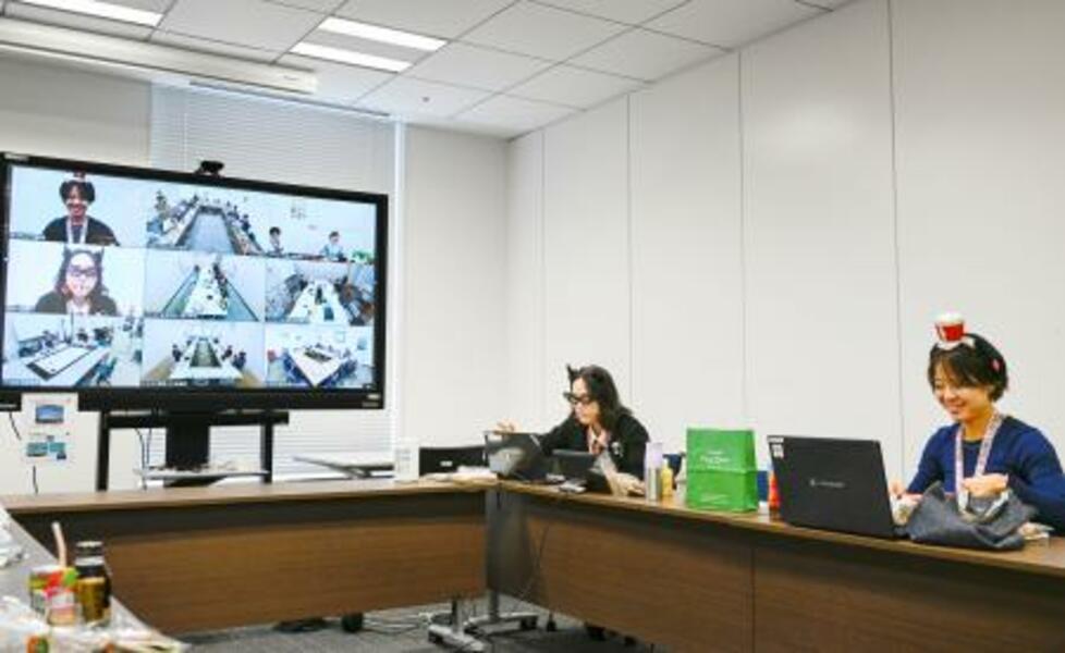 所属する東京パワーテクノロジーの手話クラブで活動する、「東京デフリンピック」陸上女子日本代表の門脇翠(右)=10月、東京都江東区(同社提供)