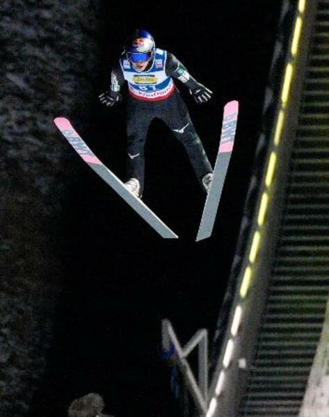 W杯ジャンプ男子個人第1戦で5位となった小林陵侑の2回目の飛躍=リレハンメル(共同)
