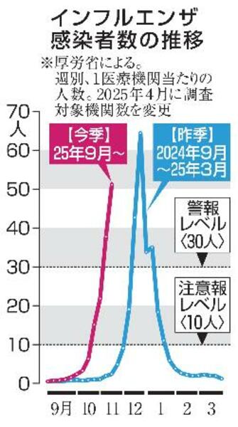 栃木県内インフルエンザ患者が過去最多に 17~23日、8割が19歳以下 専門家「別の型が流行する恐れも」