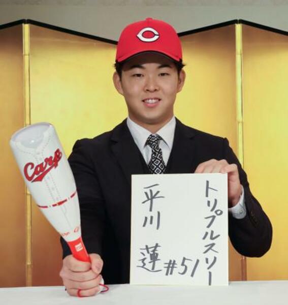 広島に入団が決まった仙台大の平川蓮外野手=28日、札幌市