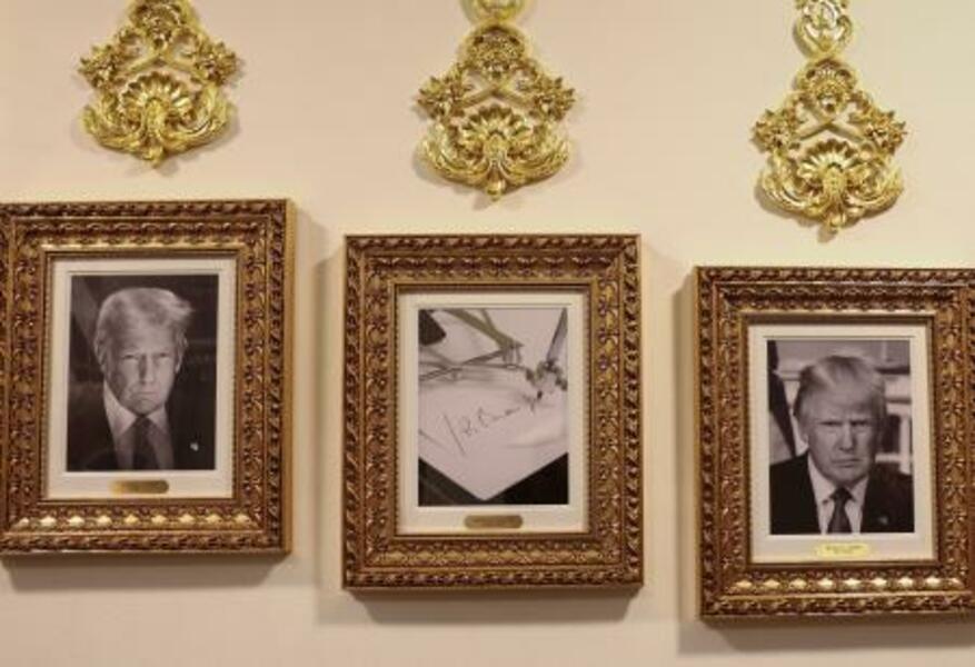 バイデン大統領の代わりにオートペンの写真が飾られた、ホワイトハウスの肖像展示コーナー=10月、ワシントン(ロイター=共同)