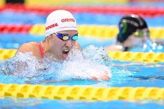女子200メートル平泳ぎ決勝 力泳する鈴木聡美=東京アクアティクスセンター