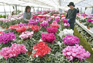 冬の贈り物に 芳賀でシクラメン出荷最盛期 独自品種も人気