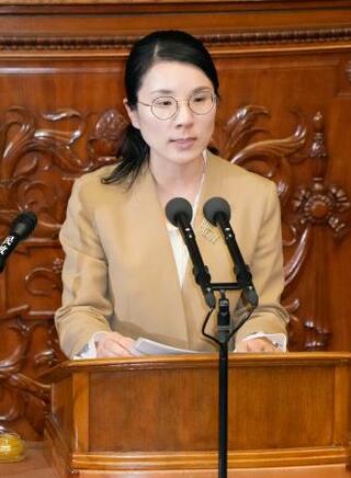 衆院本会議で代表質問する堀川朗子氏(共産党)