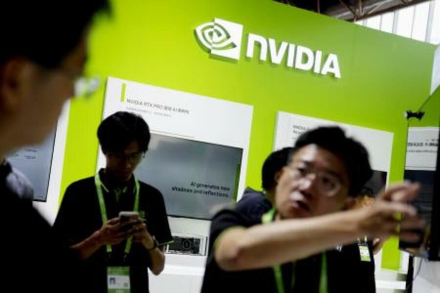 中国の展示会に出展した米半導体大手エヌビディアのブース=7月、北京(共同)
