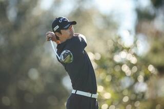米男子ゴルフの最終予選会第2ラウンド、9番でティーショットを放つ石川遼=12日、フロリダ州ポンテベドラビーチ(ゲッティ=共同)