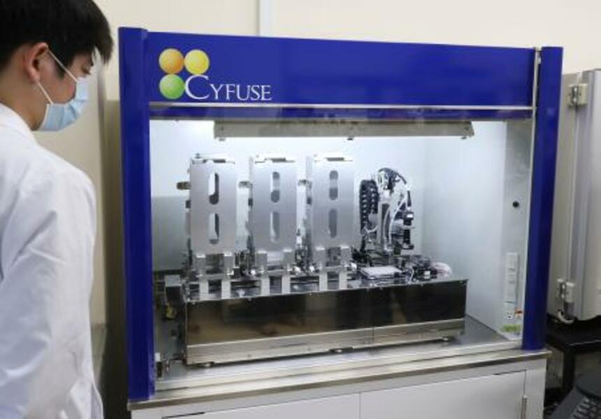 再生医療ベンチャー「サイフューズ」のバイオ3Dプリンター=15日午後、京都市左京区