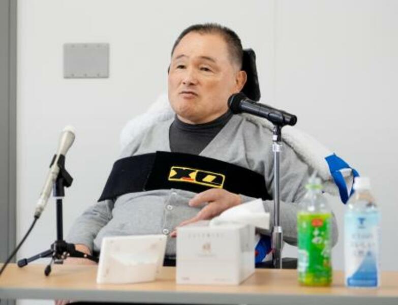 記者会見する五輪柔道金メダリストの山下泰裕氏=18日午後、神奈川県平塚市の東海大