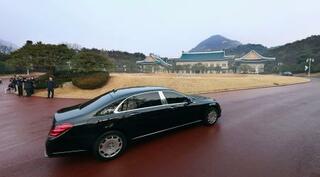 29日、ソウルの青瓦台に入る李在明大統領を乗せた車(聯合=共同)
