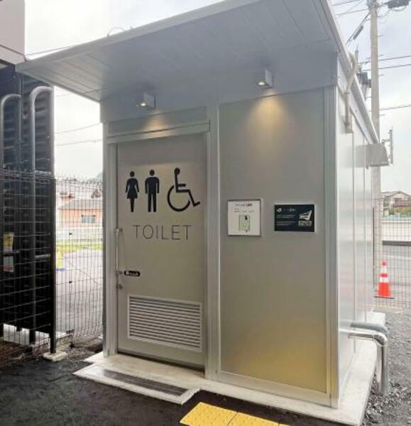 新幹線車両のアルミを再利用した東武鉄道葛生駅のトイレ=栃木県佐野市(東武鉄道提供)
