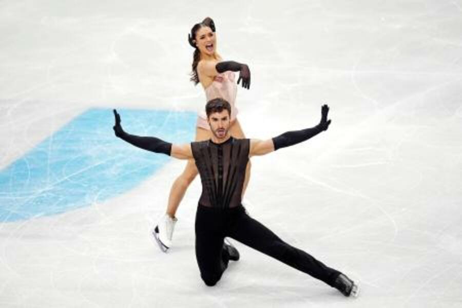 アイスダンス・RDで演技するロランス・フルニエボードリー(奥)、ギヨーム・シゼロン組=シェフィールド(PA提供・AP=共同)