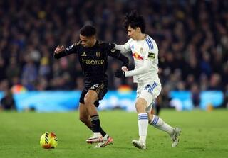 プレーするリーズの田中碧(右)=17日(ゲッティ=共同)