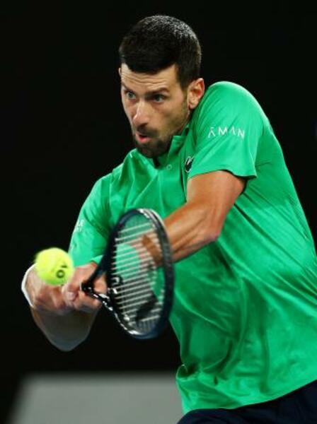 男子シングルス1回戦でプレーするノバク・ジョコビッチ=メルボルン(ロイター=共同)