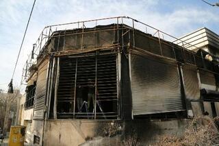 21日、イラン・テヘランで損傷した建物(ゲッティ=共同)