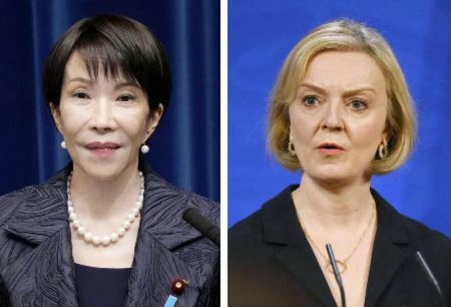 高市早苗首相とトラス元英首相(ロイター=共同)