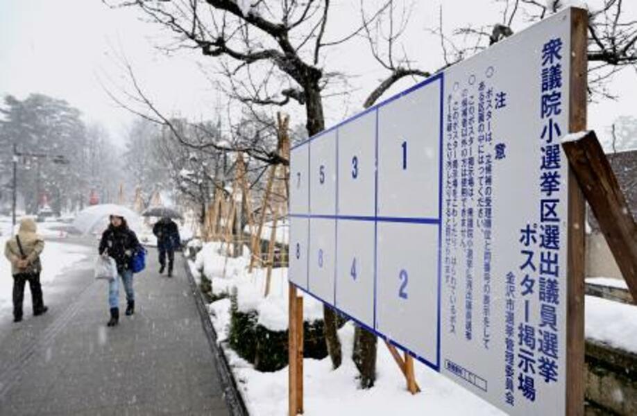 衆院選のポスター掲示板。真冬の選挙戦に突入する=23日午後2時56分、金沢市