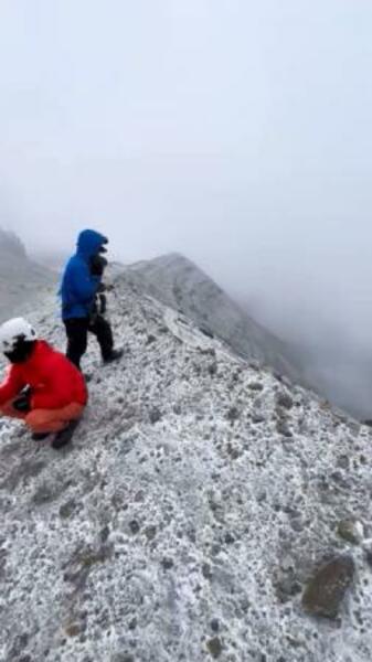 機体が見つかった熊本県・阿蘇山の中岳火口付近で活動する捜索隊=21日(熊本県警提供)