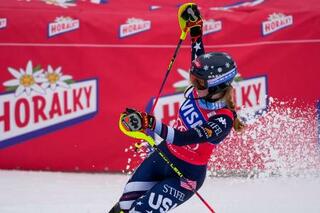 アルペンスキーW杯、女子回転で今季7勝目を挙げたミカエラ・シフリン=25日、スピンドレルブムリン(ゲッティ=共同)