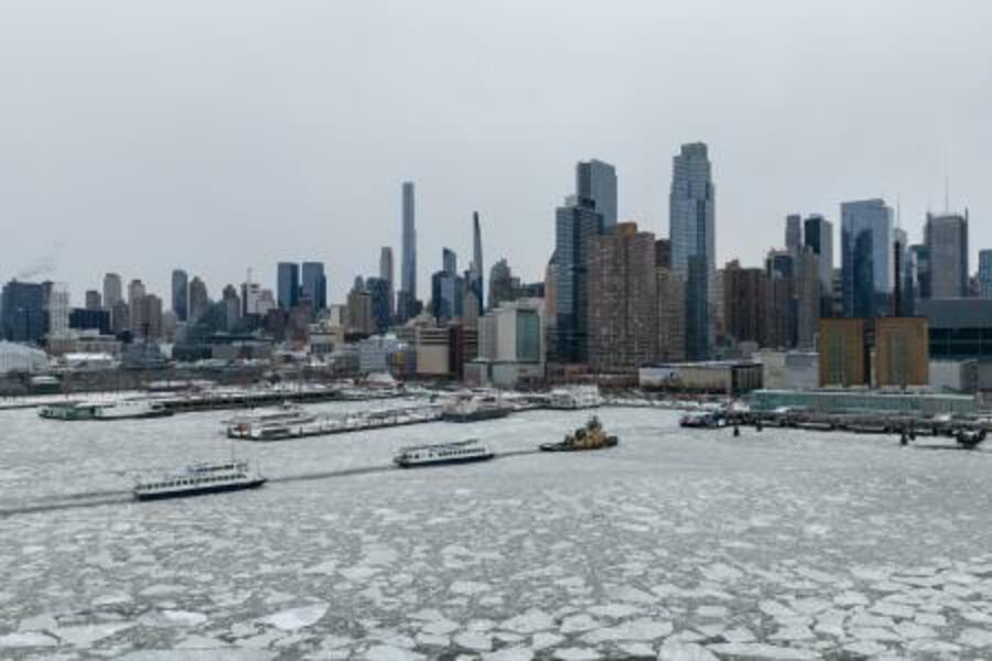 一部が凍った米ニューヨークのハドソン川=27日(ゲッティ=共同)