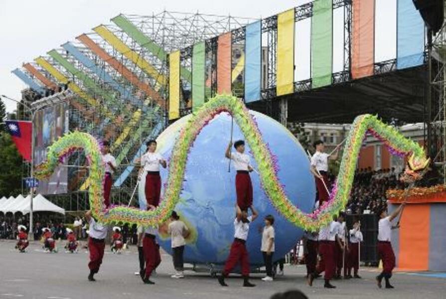 2024年、頼清徳総統の就任式典で披露された竜の演舞=台北の総統府前