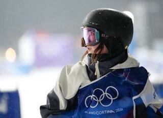 本番会場で調整するスノーボード女子ビッグエアの岩渕麗楽=リビーニョ(共同)