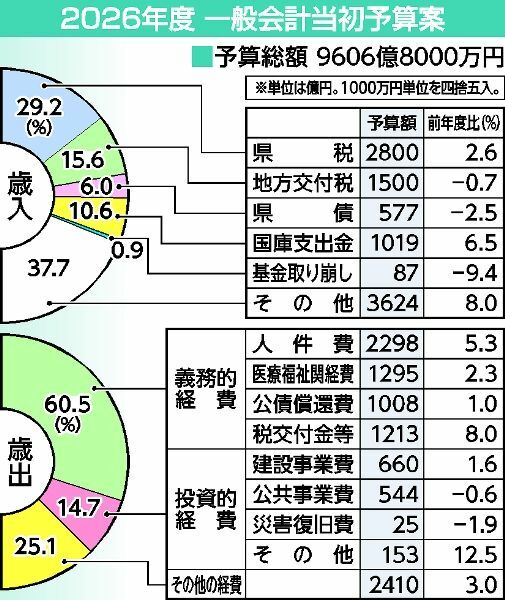 栃木県が新年度予算案を発表 5年ぶり増9606億円 人口減克服へ投資加…