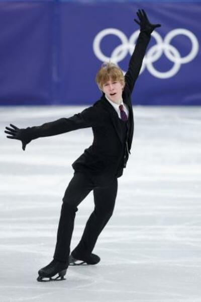 団体男子SP 演技するスティーブン・ゴゴレフ=ミラノ(共同)