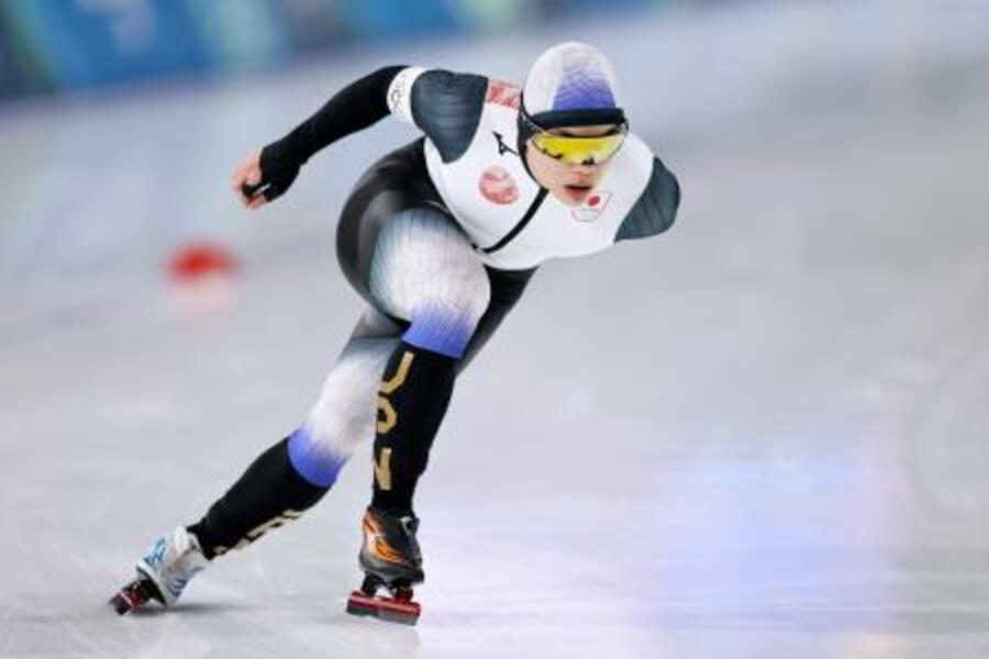 男子5000メートル 滑走する佐々木翔夢=ミラノ(共同)