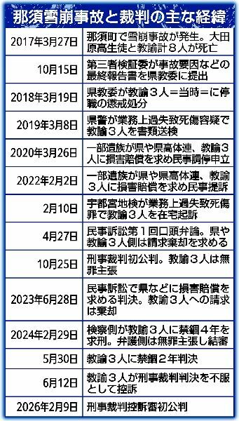 那須雪崩事故、2月9日に控訴審初公判 教諭ら3人 無罪主張へ 遺族「一…